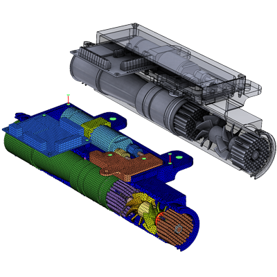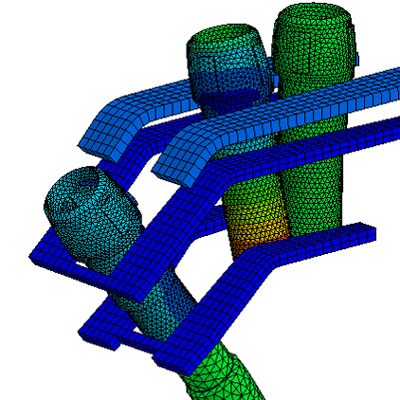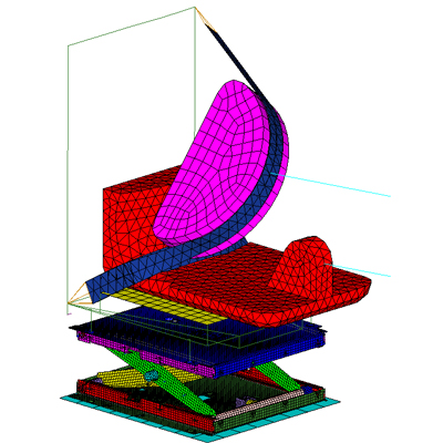 A fuel flow metering device was analyzed to assess durability in flight environments. Stress ranges during flight loads were determined and used to predict fatigue life and reliability of the device. Additionally, a CFD study was performed to predict cooling performance of the electronics' heat sink. | A class-A truck seat suspension was analyzed for FMVSS 207/210 pull test load requirements. Design changes were introduced and compliance was verified by analysis and physical test. |